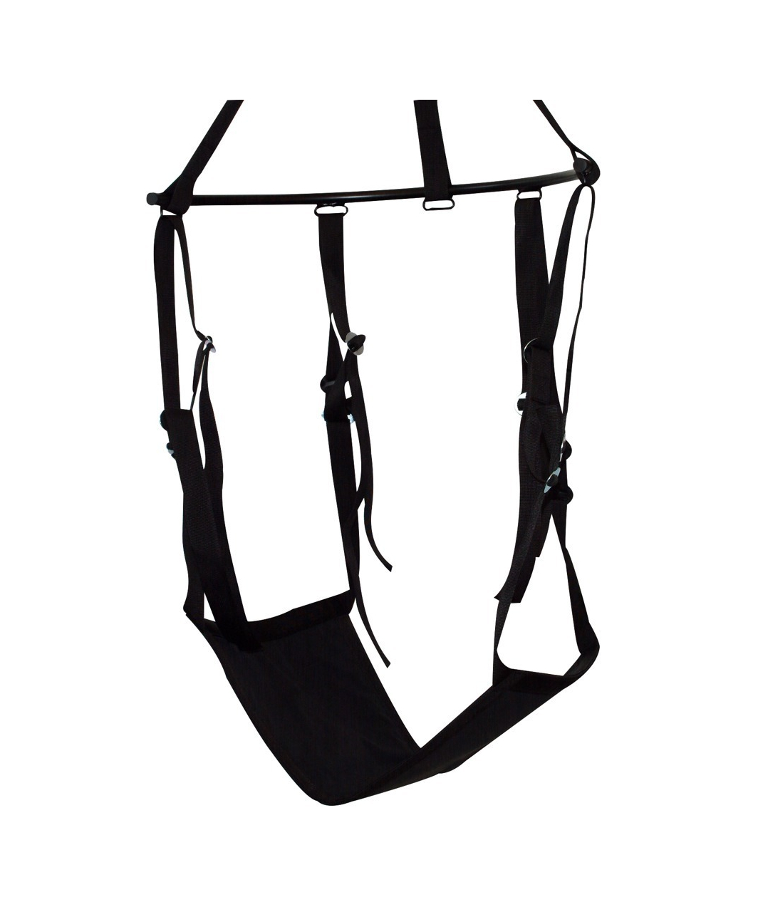 This black swing ensures new pleasures be allowing positions that are technically impossible in bed. Seat 88 x 60 cm, 100% polyester. Straps, and and footholds made of tearproof nylon, adjustable. Safety-tested, tear-resistant top quality – for loads up to 120 kg! Without assembly equipment.