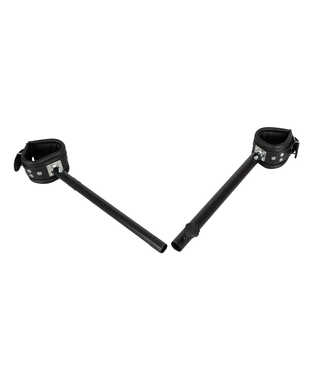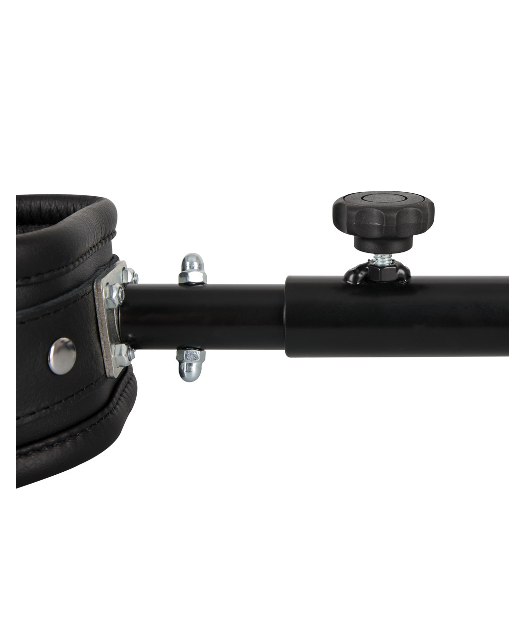 Softly padded leather cuffs, fixed on a metal bar. Bar telescopically extendable from 35 to 60 cm.